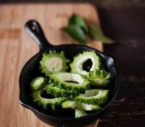 2. 将凉瓜洗净,切成薄片,放入开水中焯水,捞出后过冷水,沥干水分。